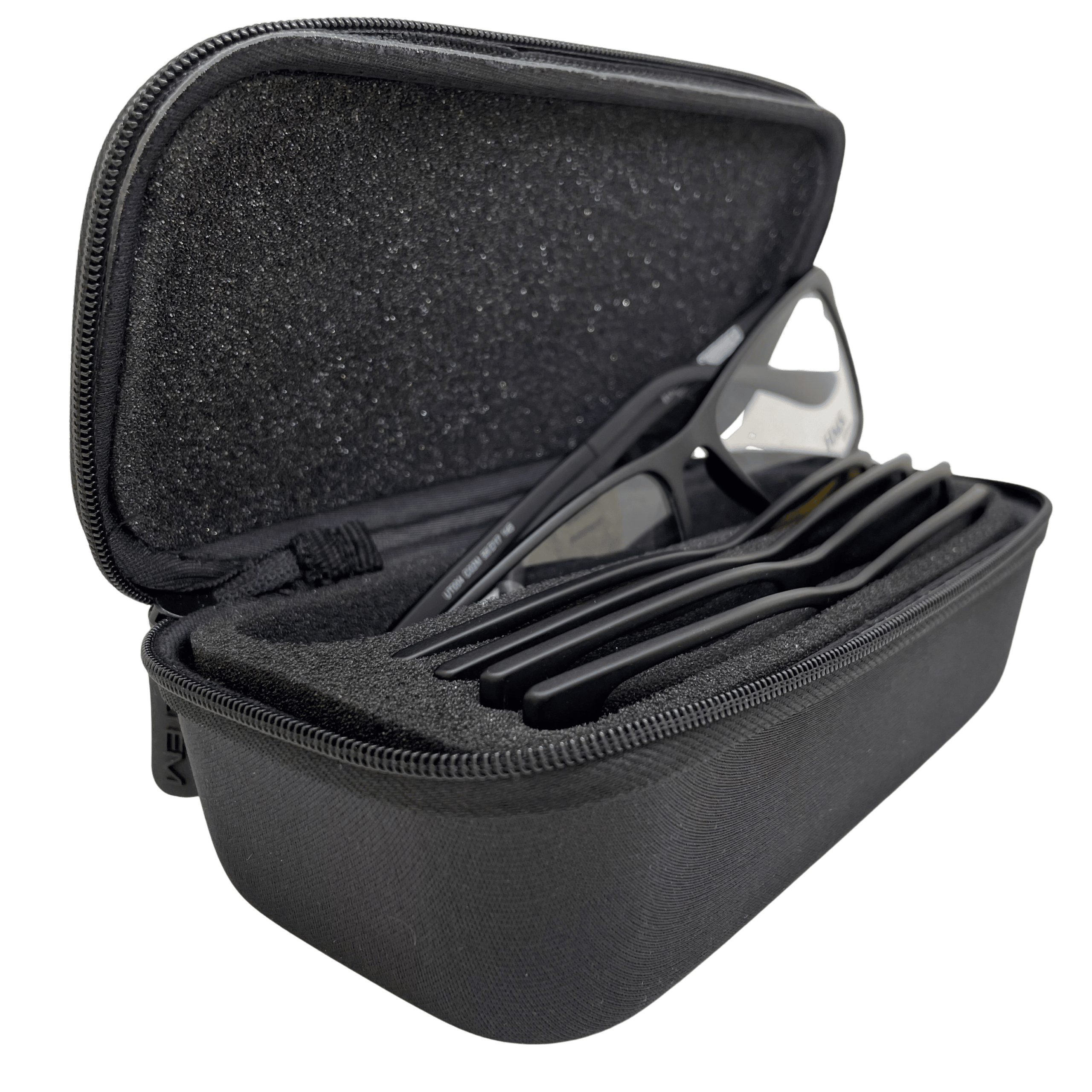 Ochelarii sunt livrați într-un toc rezistent, compartimentat pentru a oferi protectie ramei și celor 4 clip-on-uri.